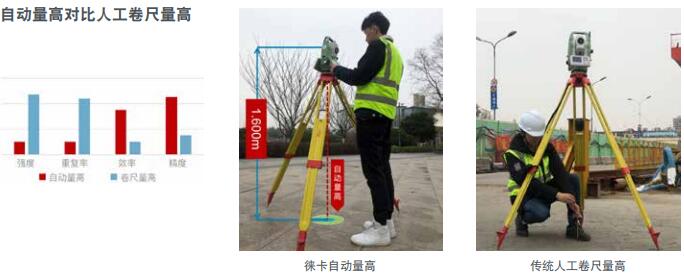 无论是在昏暗无光的隧道环境下,亦或是在进行精密的三角高程测量时,独创的自动量高技术都能带来不一样的测量体验: